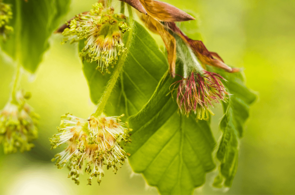 Le Hêtre est un arbre de la famille des Fagaceae, originaire d’Europe. Sa floraison d’Avril à Mai donne des chatons jaunes et verts.