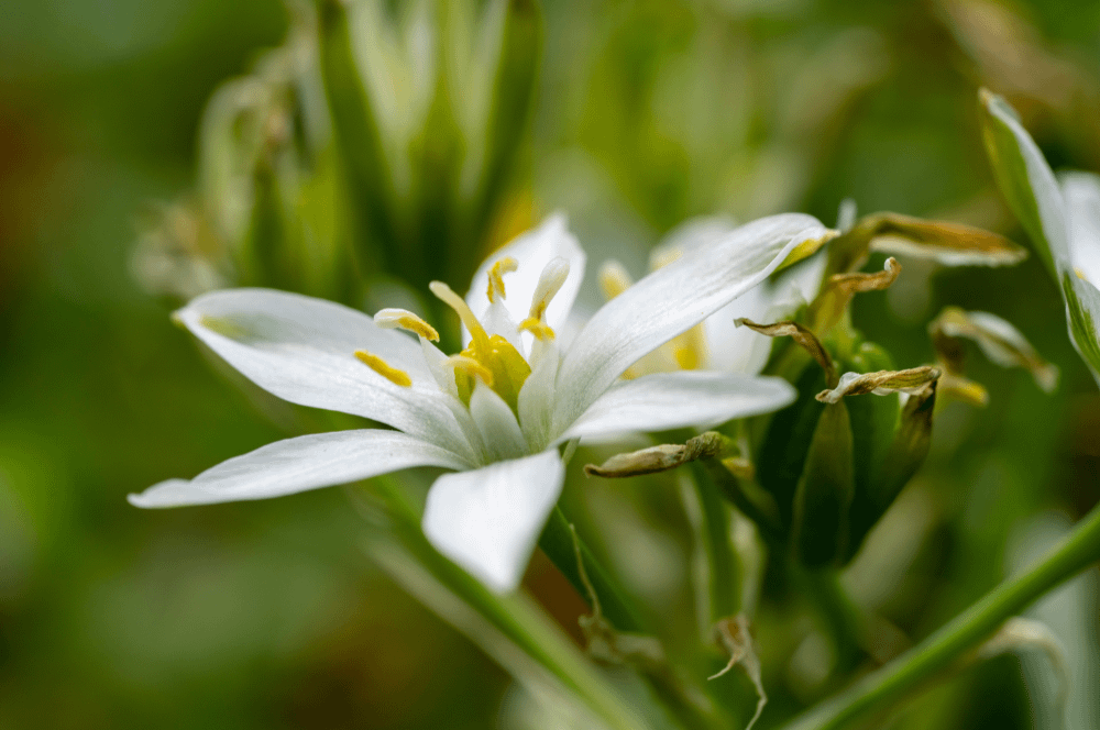 L’Ornithogale en ombelle est une plante herbacée vivace de la famille des Asparagaceae, originaire d’Europe. Sa floraison d’Avril à Juin donne des fleurs blanches.