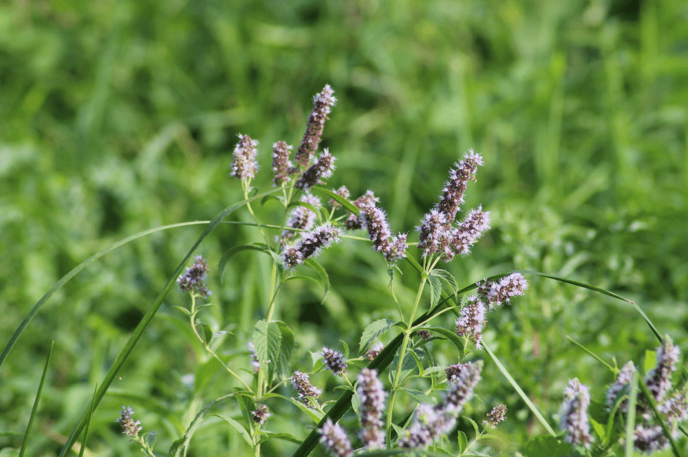 La Menthe poivrée est une plante herbacée de la famille des Lamiacées, originaire d’Europe. Sa floraison printanière produit des fleurs violettes.