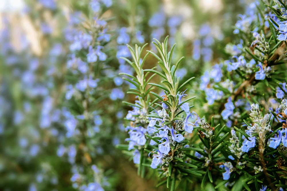 Le Romarin officinal est un arbrisseau vivace de la famille des Lamiaceae, originaire de Méditerranée. Sa floraison au printemps et automne produit des fleurs bleutées.